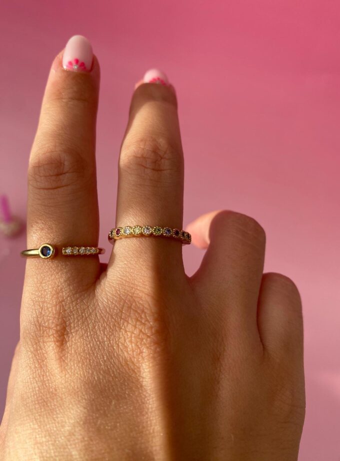 • Minik Kare Renkli Taşlı Ayarlanabilir Yüzük