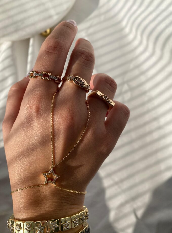 • ÇELİK Gold Taşlı Zincir Ayarlanabilir Yüzük
