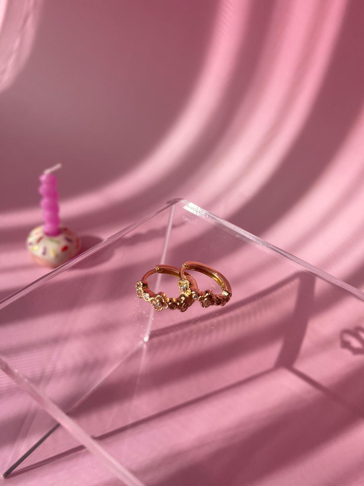 Vip Rose Rengi Çift Taşlı Halka Küpe (17mm)