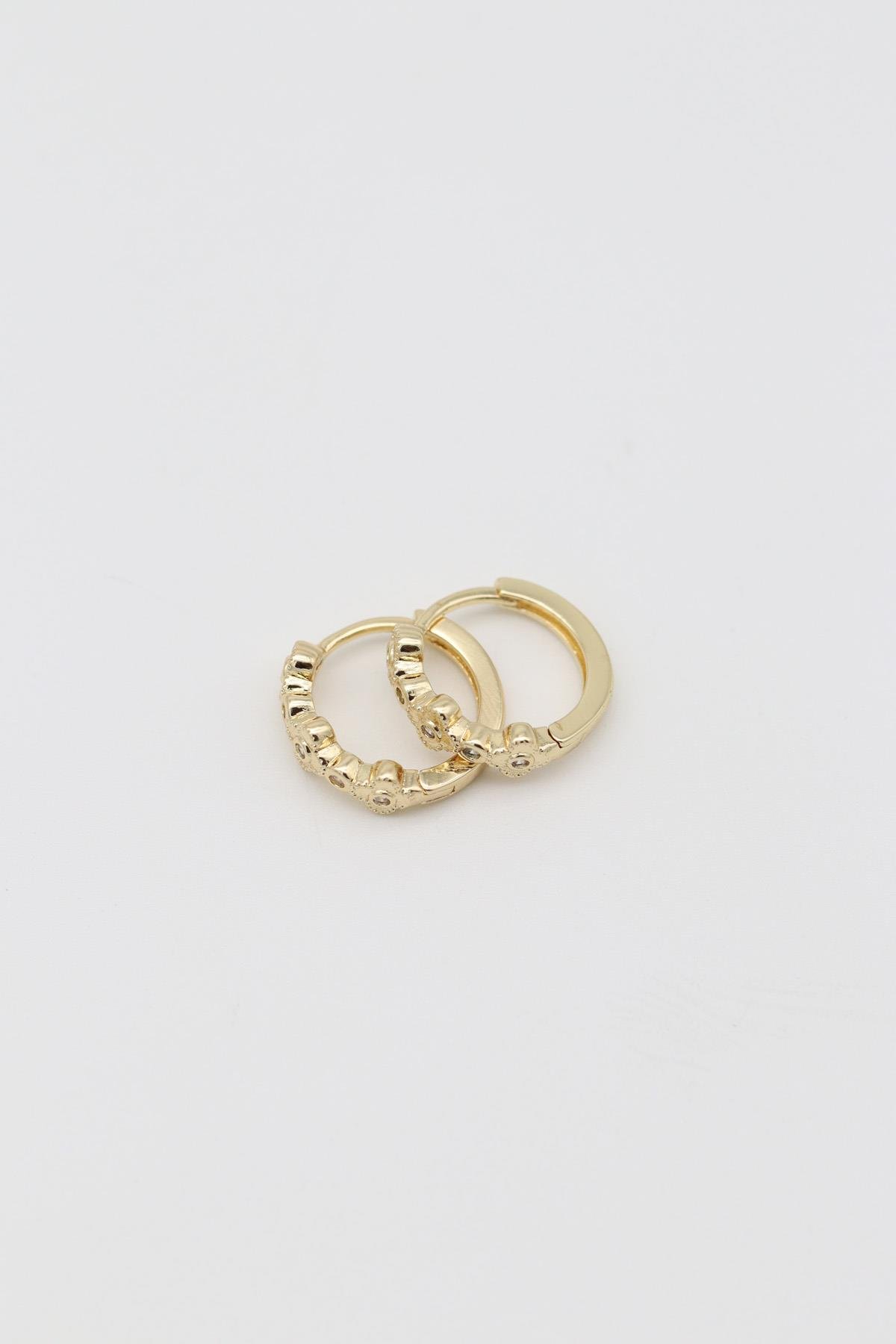 • Çelik Baget Taşlı Gold Halka Küpe